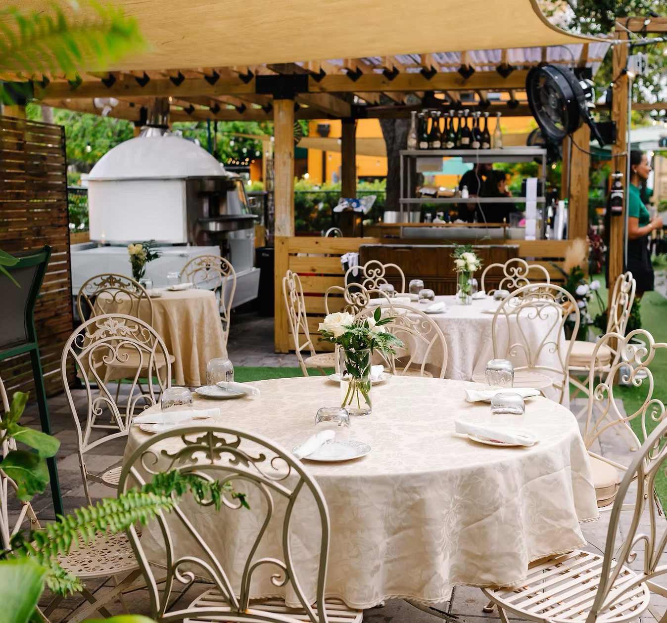 The logo uses refined typography to convey the restaurant’s elegant, garden-inspired atmosphere, with a leaf replacing the dot of the “i” to emphasize the brand’s connection to nature. These botanical forms extend throughout the system through a pattern composed of abstract leaf and botanical forms. An optional logo usage incorporates a wine glass icon as a reference to the original identity, preserving brand recognition while supporting continuity for their dinner service. Together, these elements form a cohesive visual system that balances refinement, warmth, and familiarity.